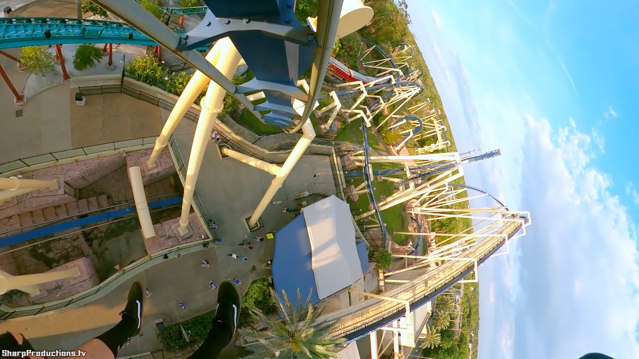 HyperSmooth front seat rider's perspective on Montu at Busch Gardens Tampa in Tampa, Florida, USA.